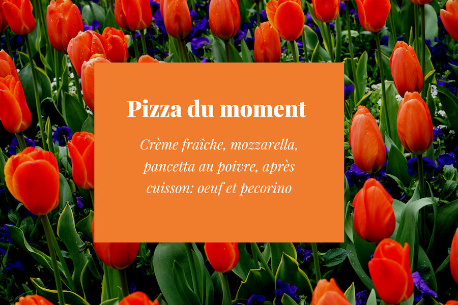 N’hésitez pas à pousser la porte et venir déguster nos pizzas à la carte et notre pizza du moment. Pour les plus gourmands, nous proposons aussi des pizzas dessert, tiramisu maison et glaces artisanales.